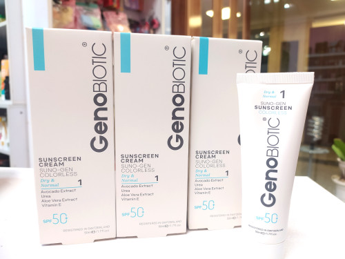 ضدآفتاب بی رنگ ژنوبایوتیک مخصوص پوست های خشک و معمولی با Spf50